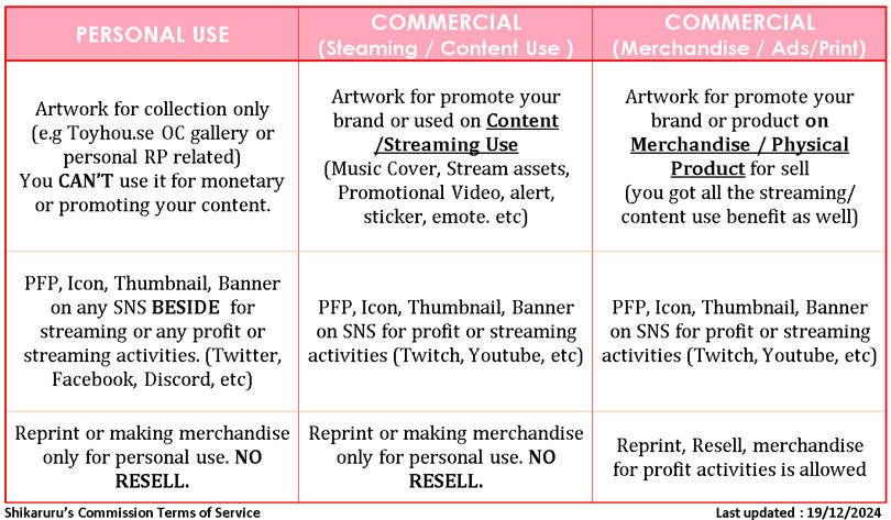 Commercial Use will cost x2 - x3 total order price. More info about personal or commercial right below!